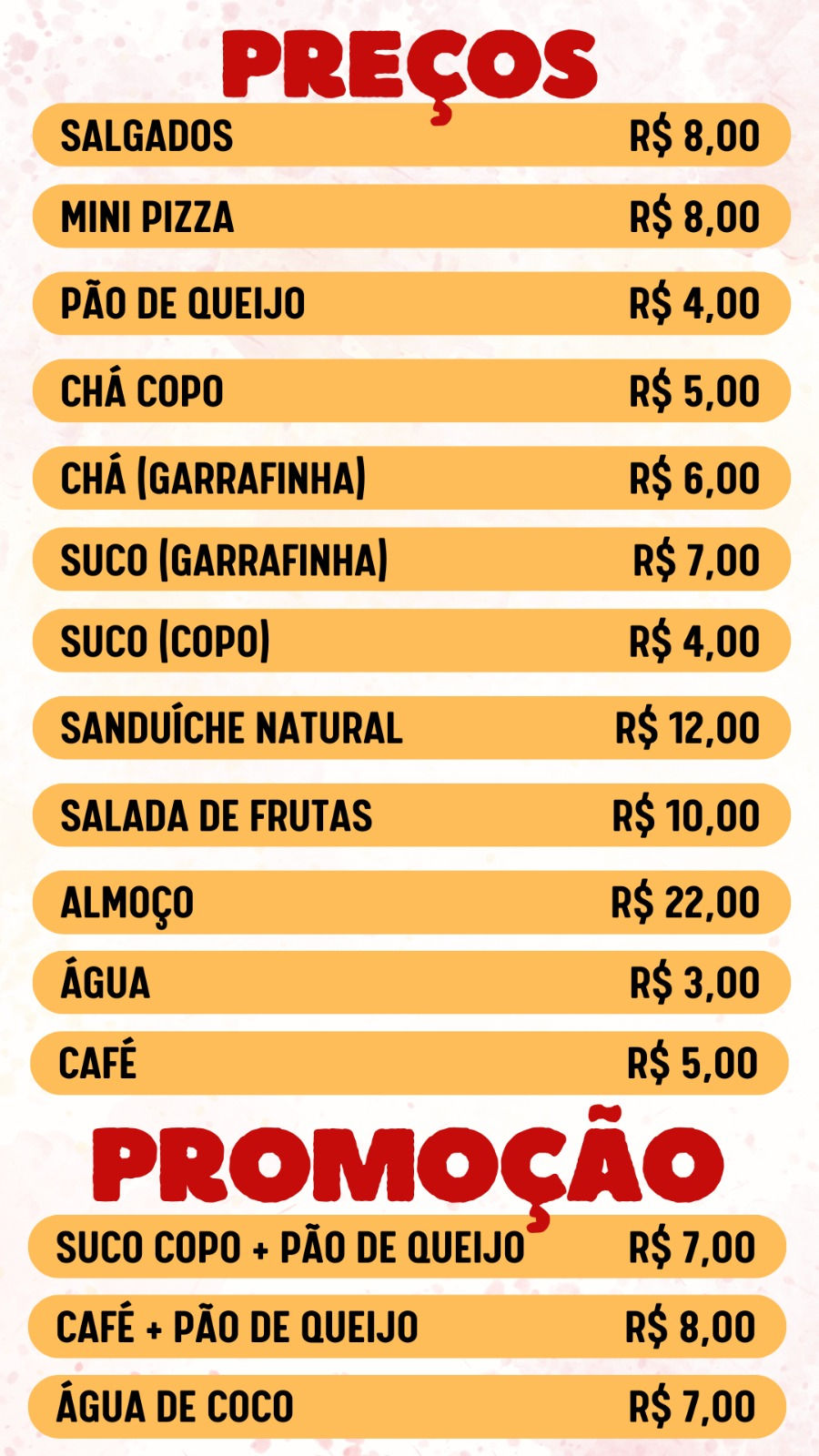 Confira nosso cardápio semanal e a tabela de preços 2025: